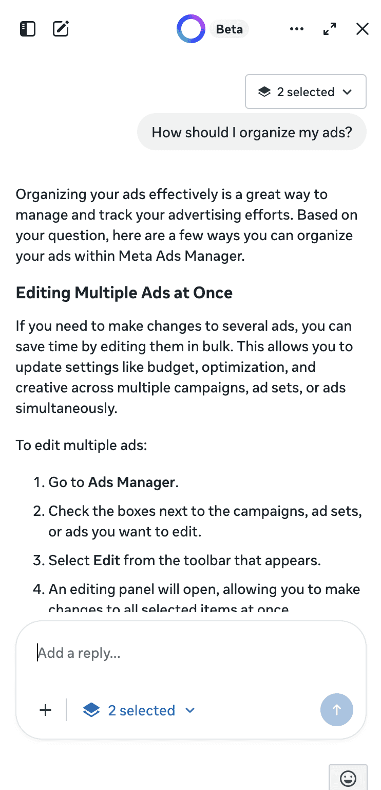 Drove the design system evolution for Meta's AI Business Assistant